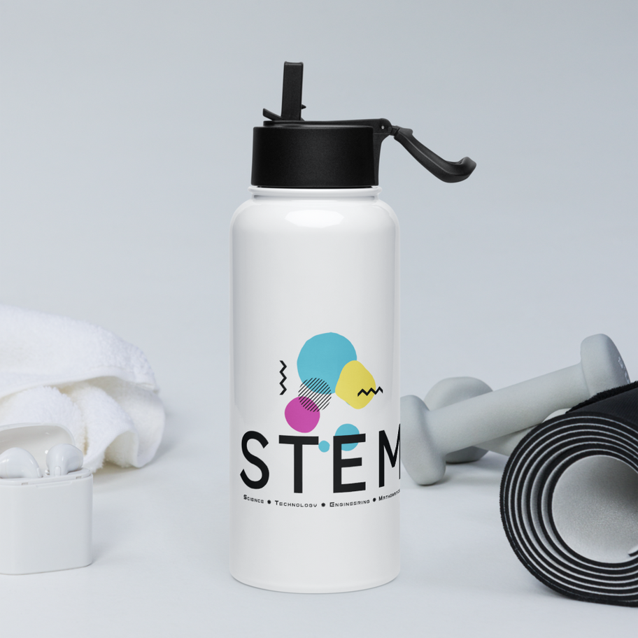 Stay hydrated all day with this 32 oz (950 ml) stainless steel water bottle, perfect for young STEM enthusiasts on the move. It's ideal for workouts or busy days, featuring a wide-mouth foldable straw for spill-free sipping and a rotating handle for easy carrying. Constructed with double-walled stainless steel and vacuum insulation, it ensures your beverages stay at the perfect temperature. With a durable plastic lid and a sleek design, it stands at 9.92″ (25.2 cm) in height, making it a reliable companion for any STEM K12 USA student. Invest in hydration that complements an active, inquisitive lifestyle.